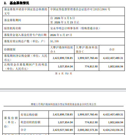 大摩沪港深科技混合基金成立 规模44亿元